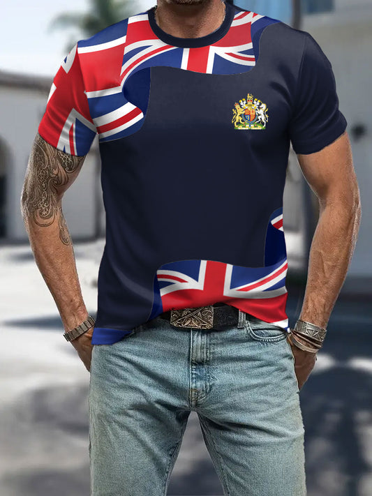 Men's UK Patriotic Flag Printed Short Sleeve T-shirt