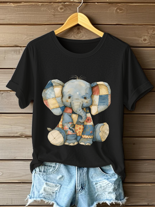 Women's Patchwork Art Elephant Print Casual T-shirt