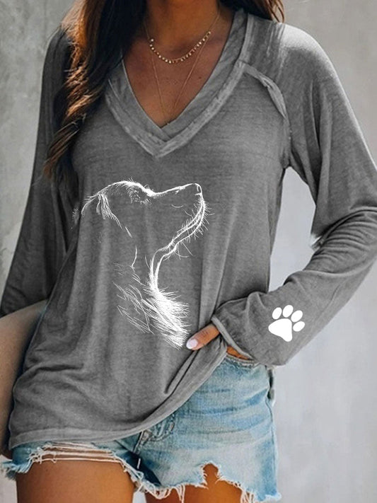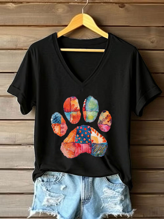 Women's Patchwork Art Paw Print Casual T-Shirt
