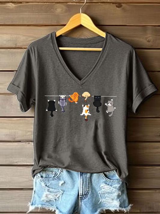 Women's Cute Cat Printed Casual T-shirt