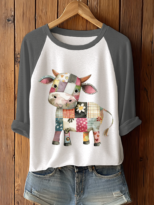 Women's Patchwork Art Cow Print Casual T-shirt