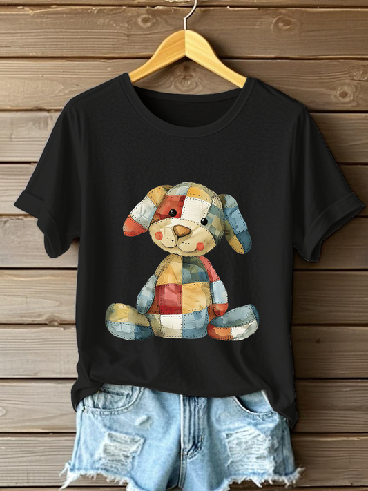 Women's Patchwork Art Dog Print T-Shirt