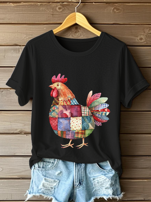 Women's Patchwork Chicken Print Casual T-shirt