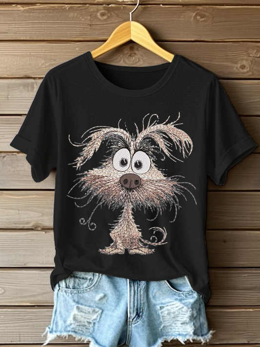 Women's Funny Dog Art Print Short Sleeve T-Shirt