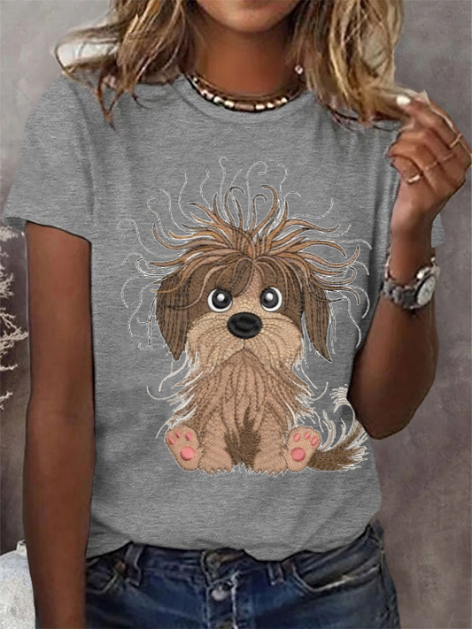 Women's Funny Crazy Dog Print Casual T-Shirt