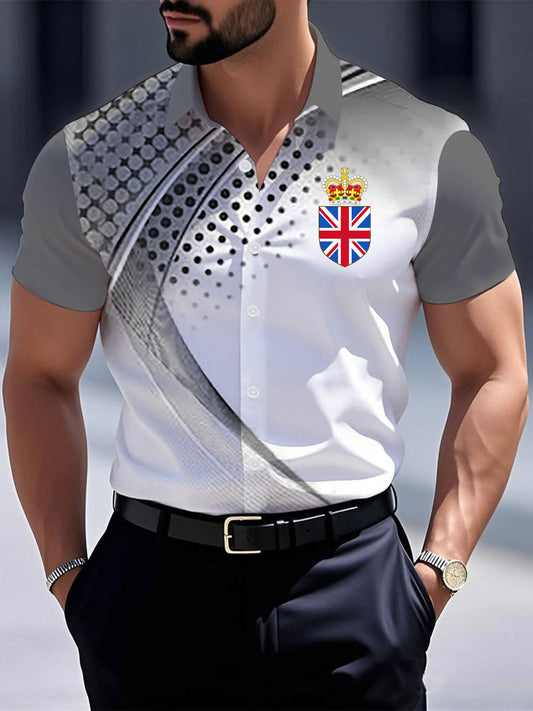 Men's BRITISH ROYAL COAT OF ARMS Stripes Print Casual Short Sleeve Top