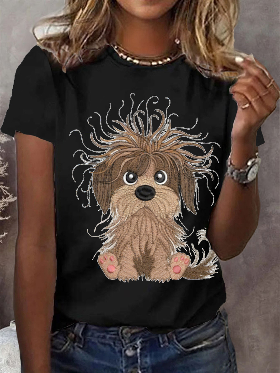 Women's Funny Crazy Dog Print Casual T-Shirt
