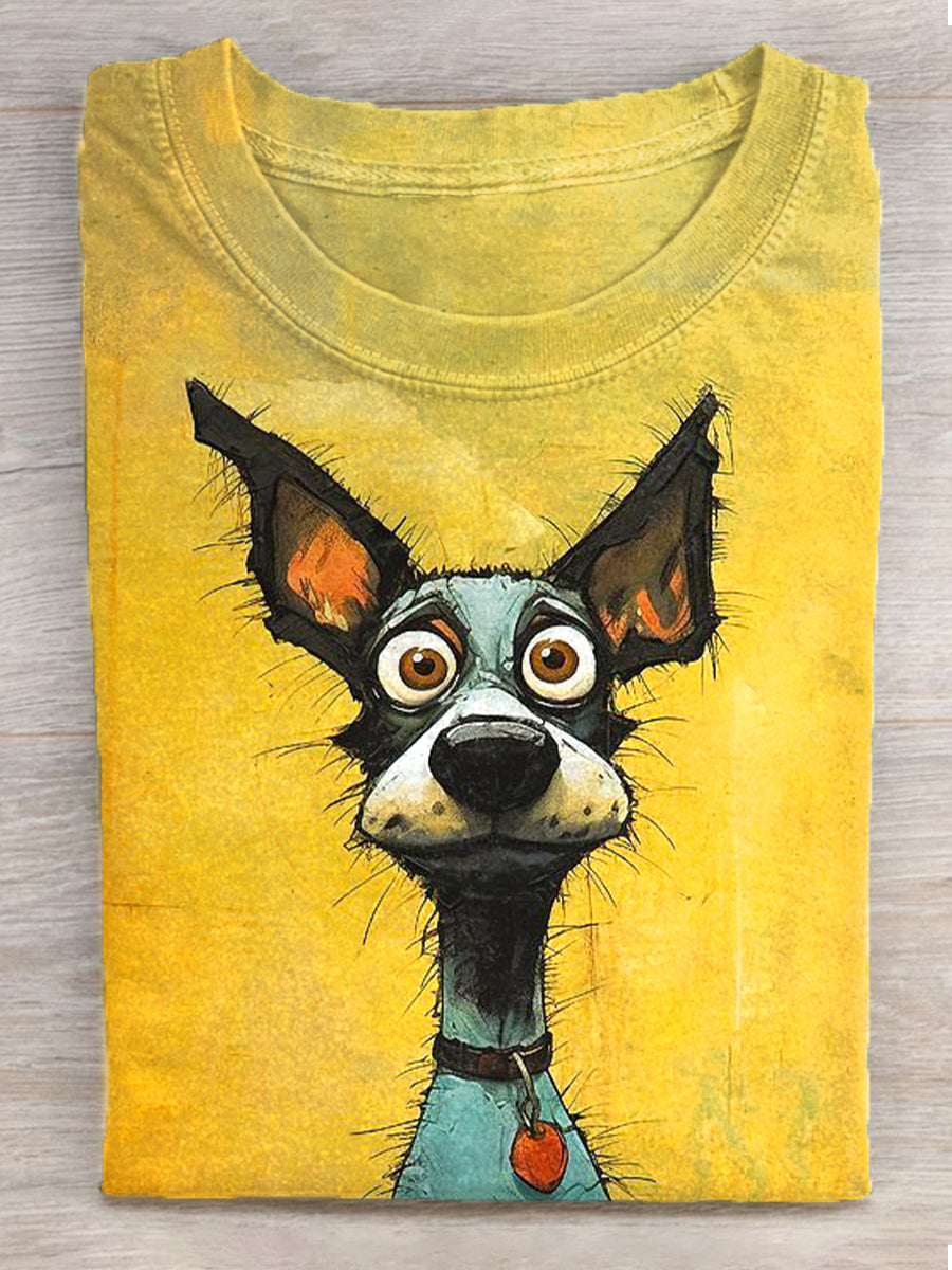 Women's Funny Dog Art Print Short Sleeve T-Shirt